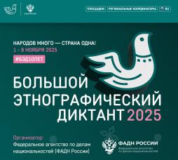 С 1 по 8 ноября 2025 г. во всех субъектах Российской Федерации и зарубежных странах пройдет Юбилейная X Всероссийская просветительская акция «Большой этнографический диктант»